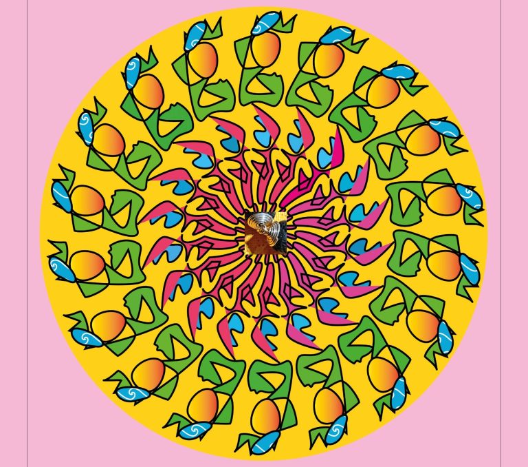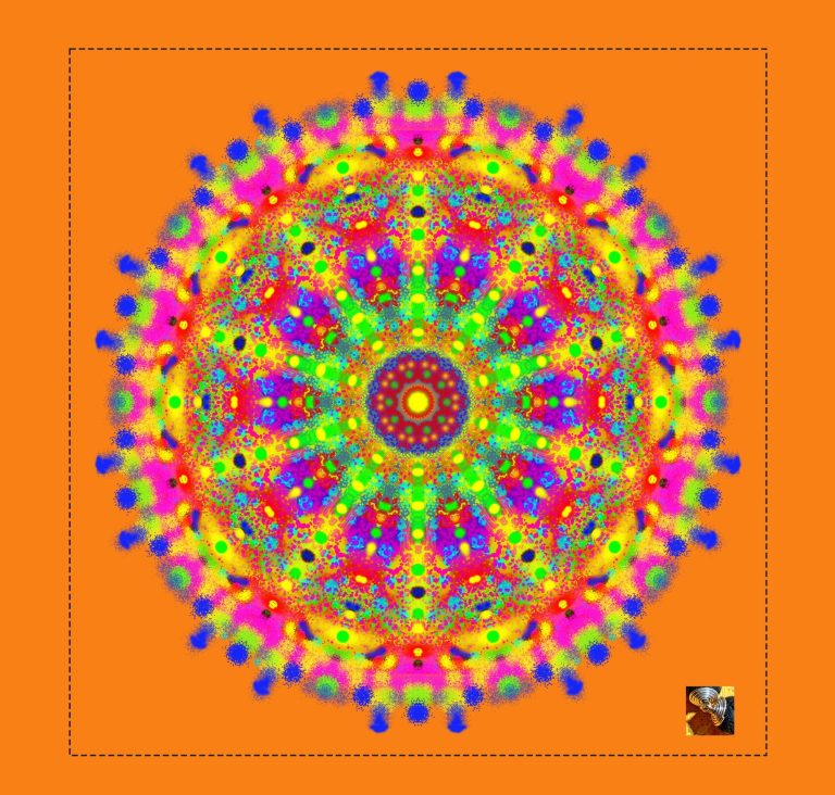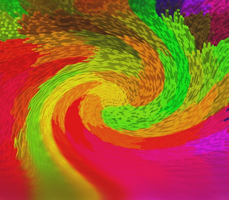 Das Pixelbild im Strudel ist intuitiv entstanden, ich habe so lange die Pixel modifiziert bis das Bild entstanden ist und es mir so gefällt.